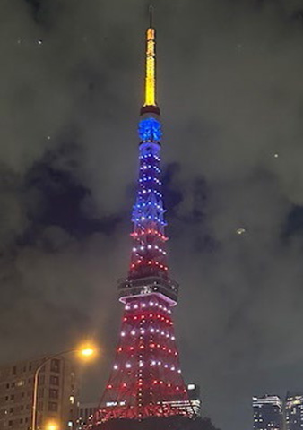 職場近くの東京タワーでも、時折、特別なライトアップがあります。写真は、星条旗カラーになったとある日のライトアップです。