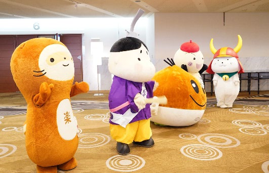 写真は貴重な集まりをとらえたものです。最近、ご当地のスターが登場してくれる時間帯があり、昨年のみきゃんとダークみきゃんに続き、貴重な遭遇となりました。心が癒されました。ありがとうございます。(Harada)